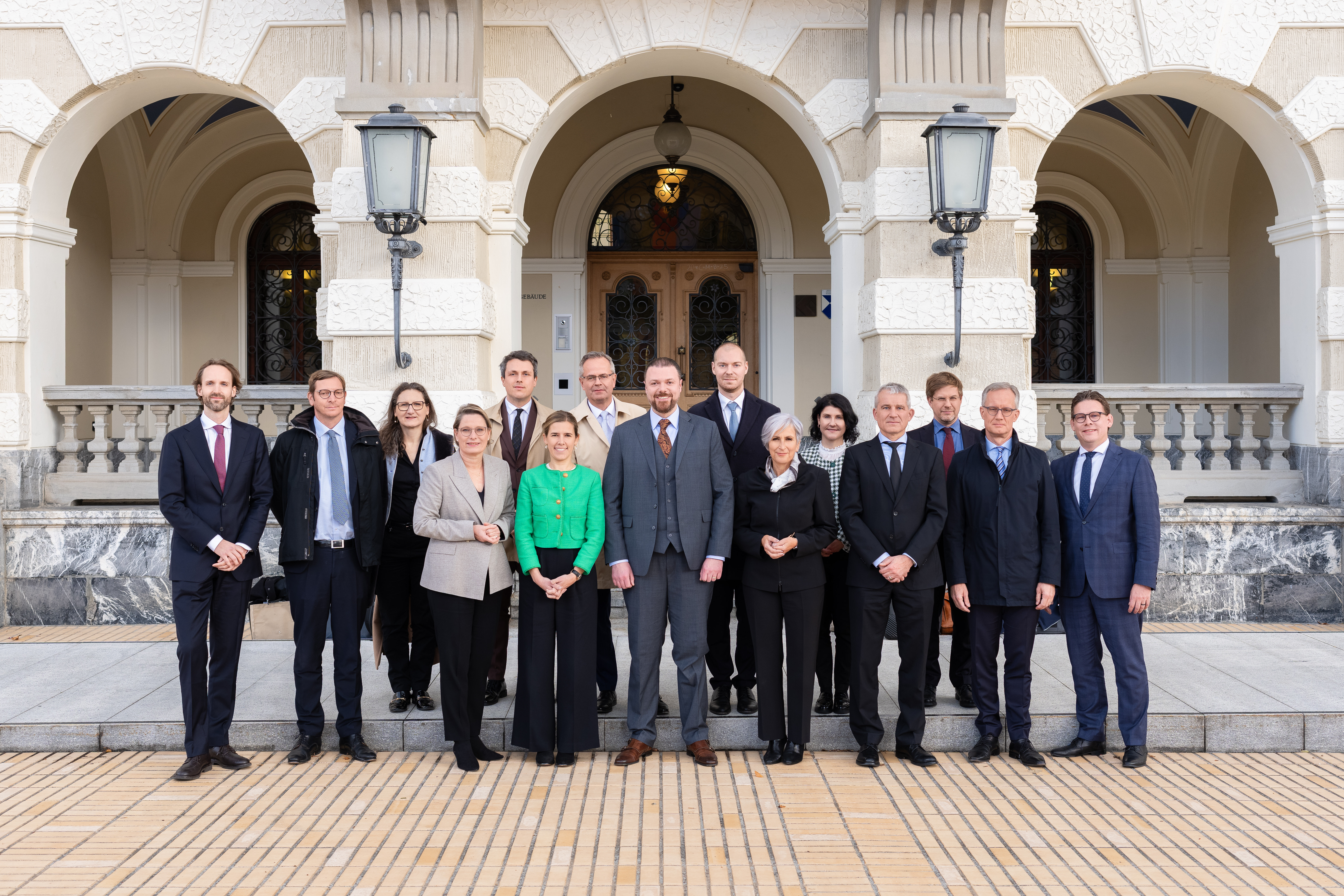 Teilgenommen haben Stefanie Hubig, Bundesministerin der Justiz und für Verbraucherschutz aus Deutschland, Anna Sporrer, Bundesministerin für Justiz aus Österreich, Elisabeth Margue, Ministerin der Justiz aus Luxemburg, sowie Bundesrat Beat Jans, Vorsteher des Eidgenössischen Justiz- und Polizeidepartements der Schweiz. Gemeinsam mit Gastgeber Emanuel Schädler tauschten sie sich über aktuelle Herausforderungen und Entwicklungen im Bereich der Justiz aus.